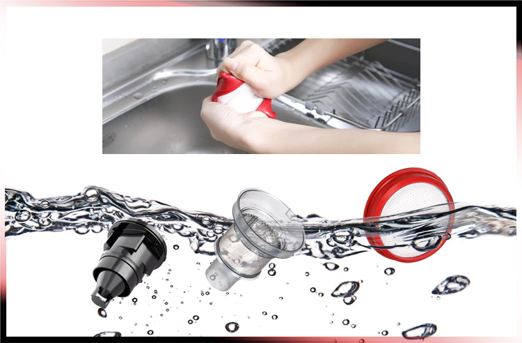 In terms of cleaning, traditional cotton filters have a hard plastic shell that only allows simple water rinsing without wringing clean, which is quite inconvenient. Therefore, most of Dibea's current vacuums have been updated to soft rubber-wrapped filters. They can be freely water washed and thoroughly wrung clean, satisfying the cleaning needs of OCD patients.