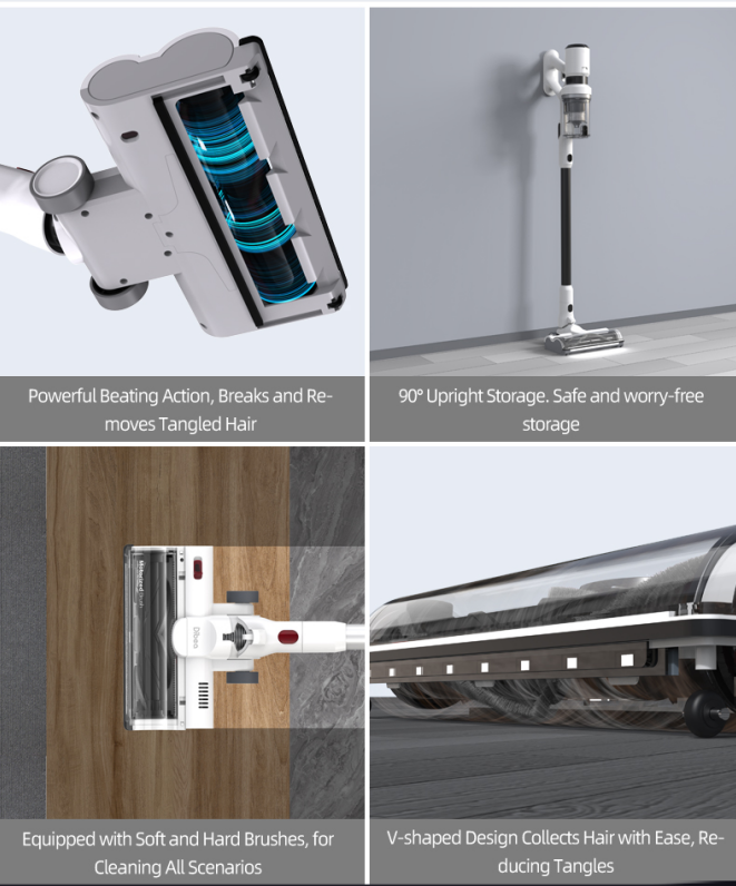 ✅ Lightweight & Maneuverable Design: Measuring 1070*255*209mm and weighing only 1.52Kg, this cordless handheld vacuum is easy to lift and maneuver, making it perfect for cleaning high shelves, car seats, and tight corners without arm fatigue.