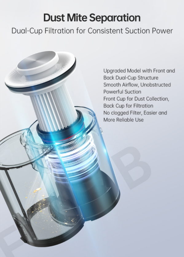 ✅ Dual dust cups & washable HEPA filter - High speed motor with dual cyclone filtration tech can filter 99.97% particles as tiny as 0.3 micrometers, separate dust and hair without any leaks. The lightweight 2.2kg design and extended 4.5m cord deliver unstoppable cleaning for hours.