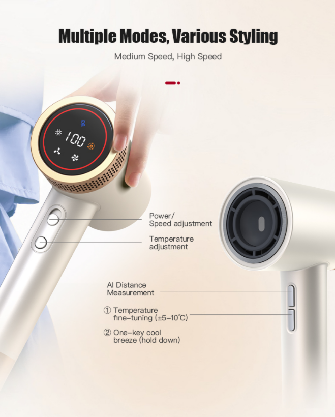 ✅ LED HD Display for Precise Control: Features an LED HD screen that allows you to clearly view and adjust wind temperature and speed settings at a glance, customizing your drying and styling experience to suit different hair types.
